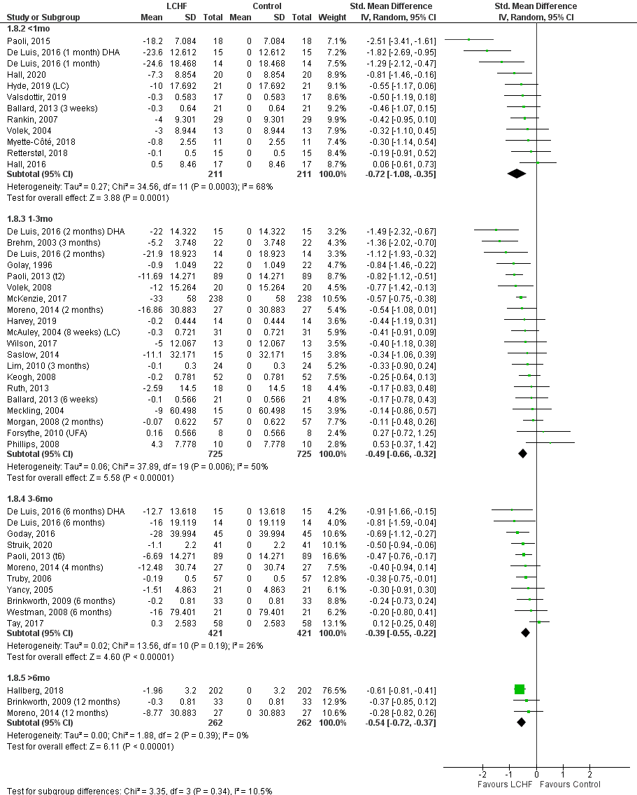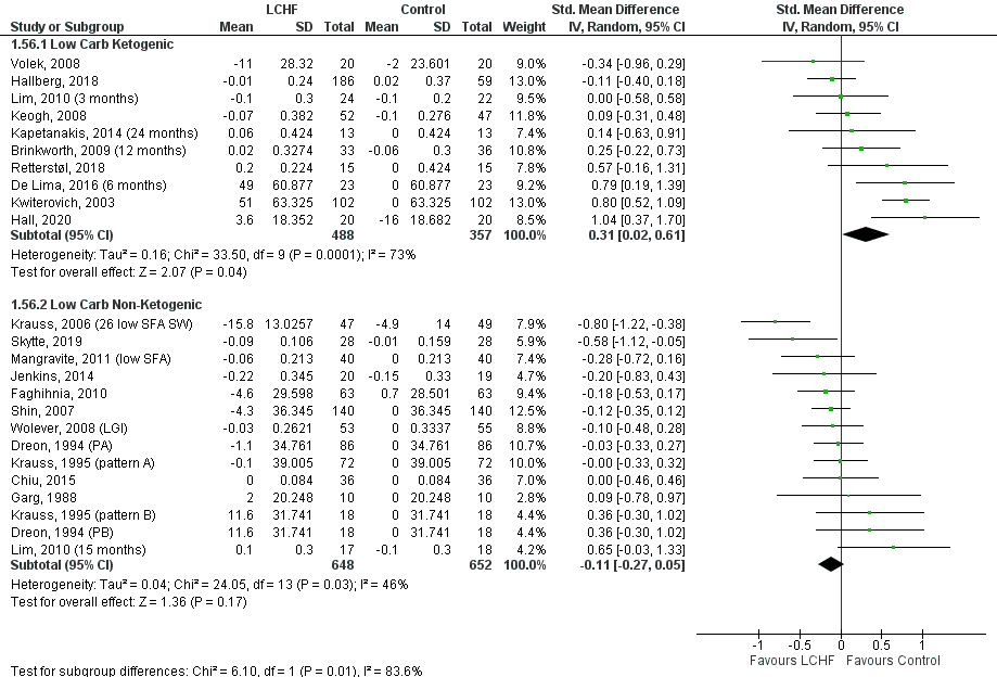 - In the case of trials involving low carbohydrate diets versus low carbohydrate diets or ketogenic diets versus ketogenic diets, change from baseline data will substitute for between group results.